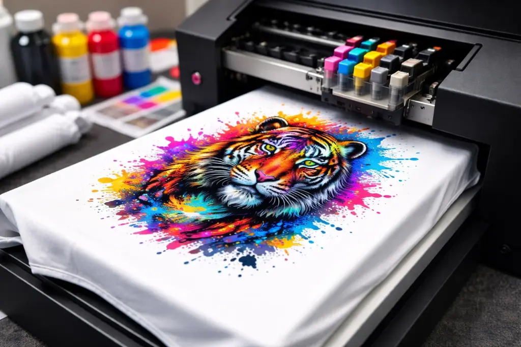 DTG ist perfekt, wenn dein Motiv viele Farben, feine Details oder Fotorealismus enthält. Ohne Mindestmenge kannst du auch einzelne Shirts professionell produzieren lassen.