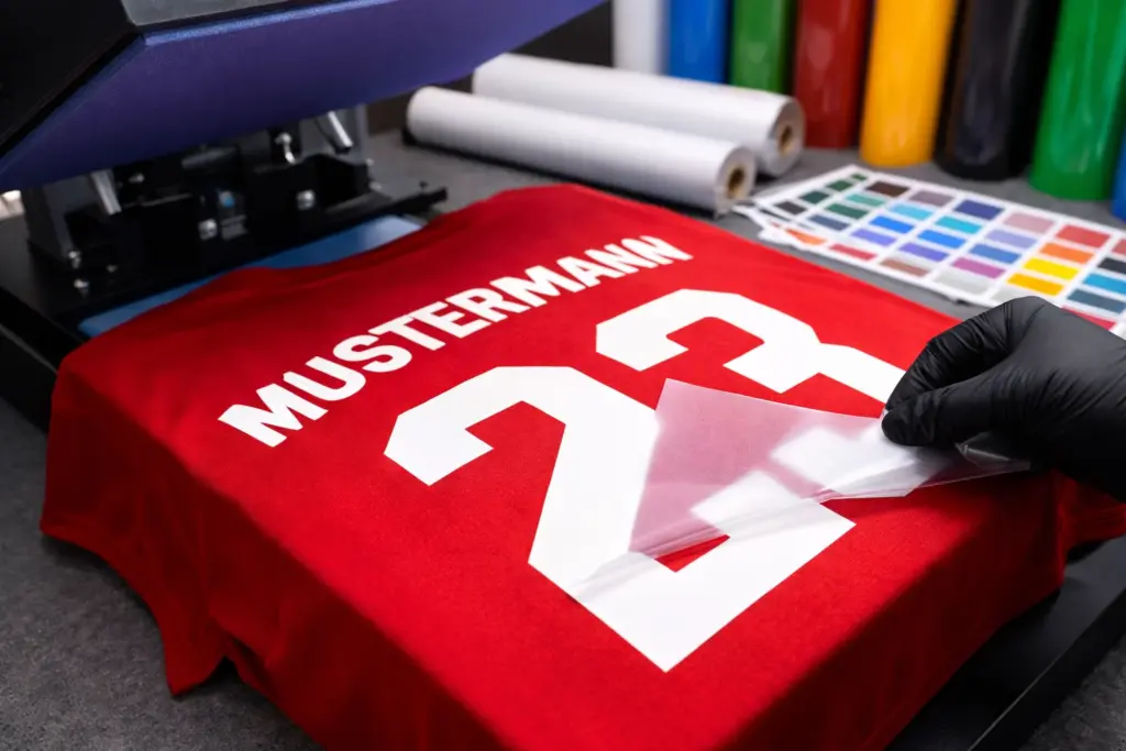Flockdruck eignet sich, wenn dein Motiv eine samtige, leicht erhabene Optik haben soll. Besonders beliebt für Vereinskleidung, Nummern und hochwertige Schriftzüge.