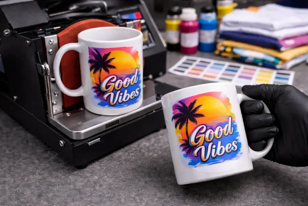 Sublimationsdruck ist die beste Wahl für vollflächige, farbintensive Designs auf Polyester sowie für personalisierte Tassen, Werbeartikel, Merchandise-Produkte und viele weitere beschichtete Artikel. Der Druck ist nicht spürbar und dauerhaft in das Material integriert.
